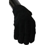 Dolce & Gabbana Black Leather Motorcycle Biker Mitten Gloves