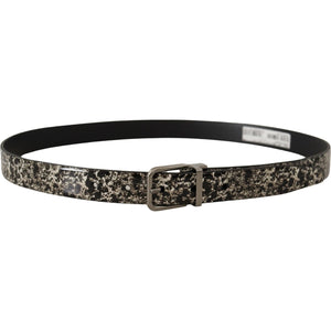 Dolce & Gabbana Black Marble Print Leather Silver Logo Buckle Belt