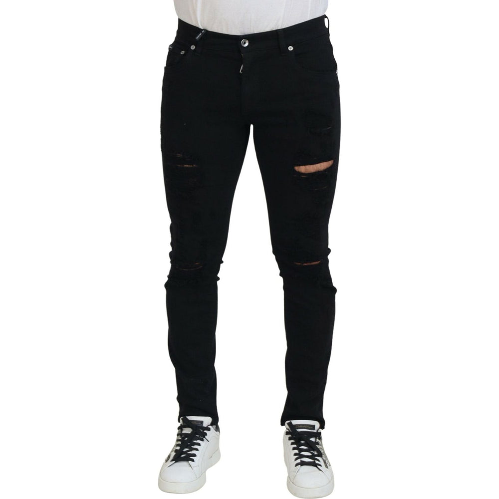 Dolce & Gabbana Black Slim Fit Tattered Denim Cotton Jeans