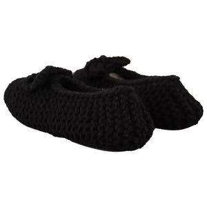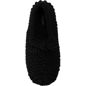 Dolce & Gabbana Black Slip On Ballerina Flats Wool Knit Shoes