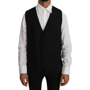 Dolce & Gabbana Black Solid Wool Silk Vest