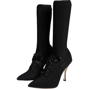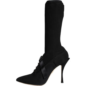 Dolce & Gabbana Black Stiletto Heels Mid Calf Boots Shoes