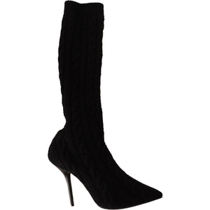 Dolce & Gabbana Black Stretch Socks Knee High Booties Shoes