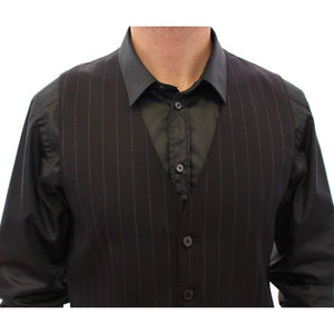 Dolce & Gabbana Black Striped Wool Logo Vest