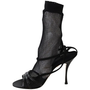 Gorgeous brand new with tags, 100% Authentic Dolce & Gabbana black stiletto heeled sandals, complementing them with a thin mesh sock made of soft textiles. Narrow criss-cross straps are crafted from velvety suede and patent leather.