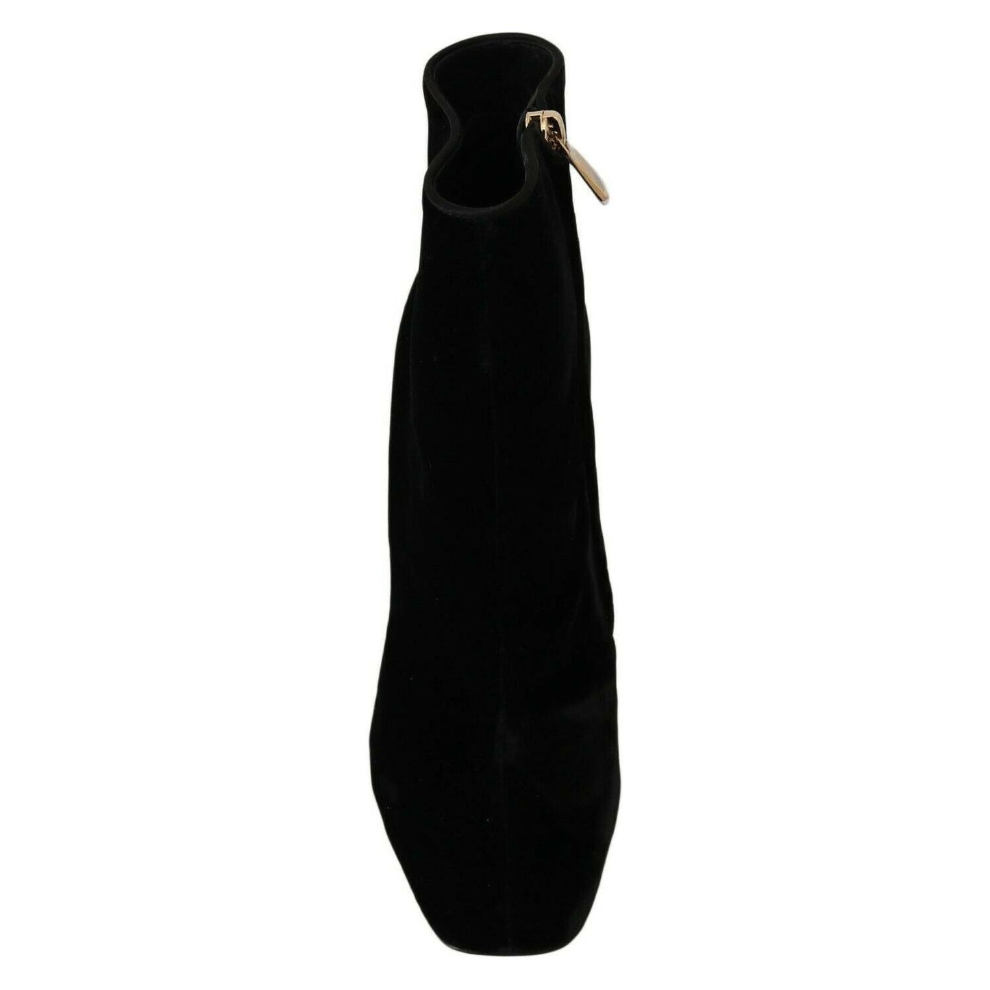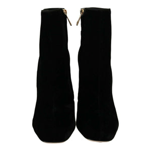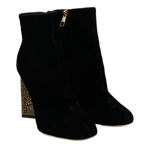 Dolce & Gabbana Black Velvet Crystal Square Heels Shoes