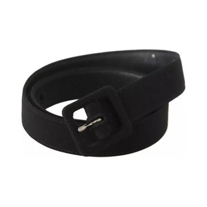 Dolce & Gabbana Black Velvet Leather Logo Waist Buckle Belt