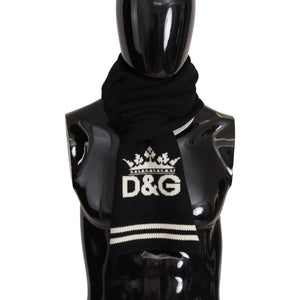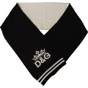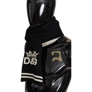 Dolce & Gabbana Black White Cotton DG Printed Cashmere Shawl Scarf