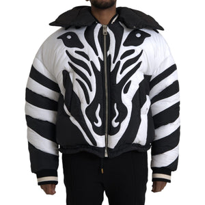 Dolce & Gabbana Black White Stripes Hooded Puffer Jacket