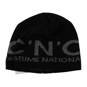 Costume National Black Wool Blend Branded Beanie Hat