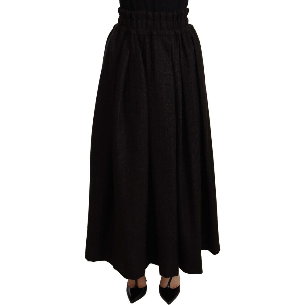Dolce & Gabbana Black Wool High Waist Maxi PIECE Skirt