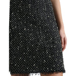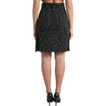 Dolce & Gabbana Black Wool Knit Tweed High Waist Mini Skirt