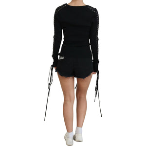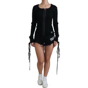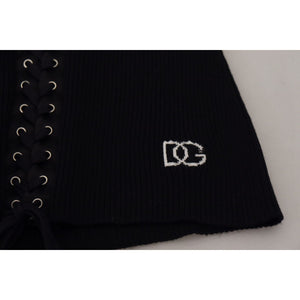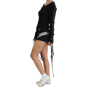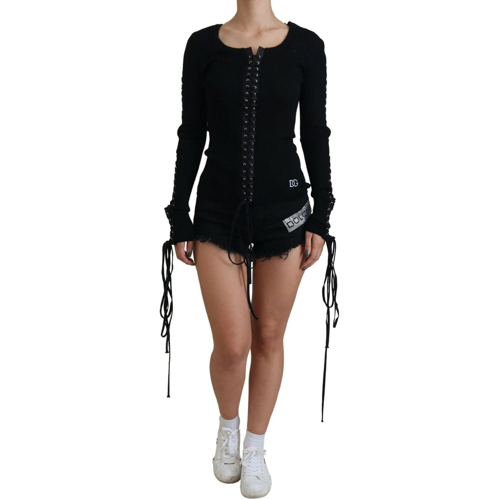 Dolce & Gabbana Black Wool Knitted Tie Up Slim Fit Sweater