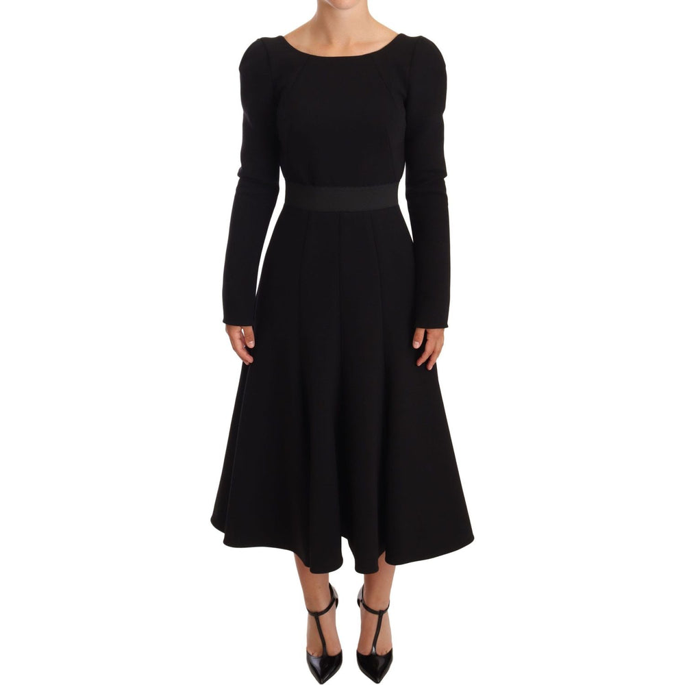 Dolce & Gabbana Black Wool Stretch Sheath Open Back Dress