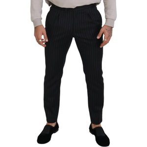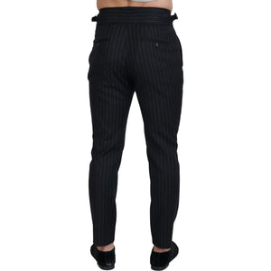 Dolce & Gabbana Black Wool Striped Chino Pants