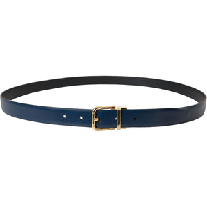 Dolce & Gabbana Blue Calf Leather Gold Metal Buckle Belt Men