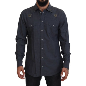 Dolce & Gabbana Blue Cotton Denim Crystal Bee Shirt