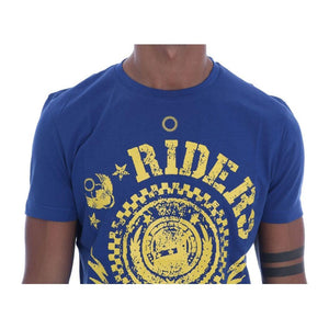 Frankie Morello Blue Cotton RIDERS Crewneck T-Shirt