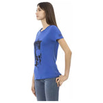 Embrace the bold spirit of Trussardi Action with this captivating blue T-shirt, a true emblem of trendy casual wear. Crafted for those who appreciate the art of effortless style, this top features an eye-catching front print that makes a statement without trying too hard. The combination of cotton and viscose ensures both comfort and durability, making it an ideal choice for any fashion-forward wardrobe. Radiate confidence with this essential piece from Trussardi Action, seamlessly blending modern style with timeless elegance.