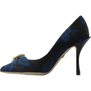 Dolce & Gabbana Blue Floral Ayers Crystal Pumps Shoes