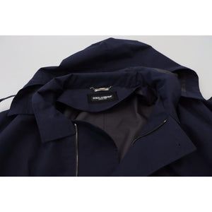 Dolce & Gabbana Blue Hooded Double Breasted Coat Jacket