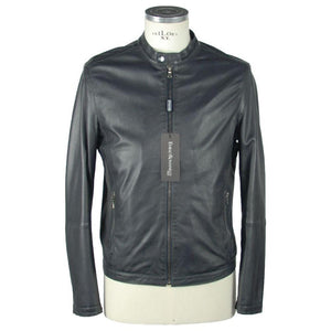 Indulge in the fusion of classic craftsmanship and modern style with Emilio Romanelli’s sleek leather jacket. Exquisitely designed for the fashion-forward man, this piece adds an effortlessly cool essence to any ensemble with its striking blue hue. Perfect for making a statement while exuding refined elegance, this jacket is a masterpiece of design and comfort originating straight from the heart of India.
