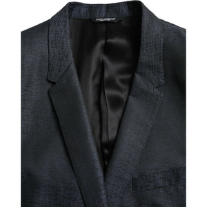 Dolce & Gabbana Blue Wool GOLD Single Breasted Coat Blazer