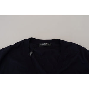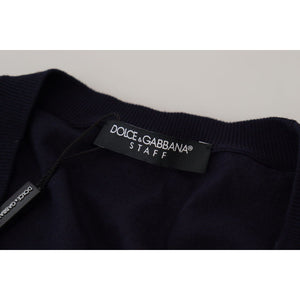 Dolce & Gabbana Blue Wool STAFF Down Cardigan Sweater