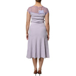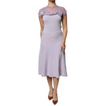 Blumarine Purple Short Sleeves Floral Lace Trim A-line Midi Dress