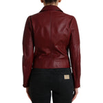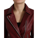Dolce & Gabbana Bordeaux Leather Biker Coat Lambskin Jacket JKT3713-40