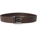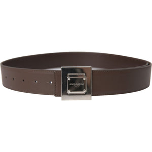 Dolce & Gabbana Brown Calf Leather Square Metal Buckle Belt