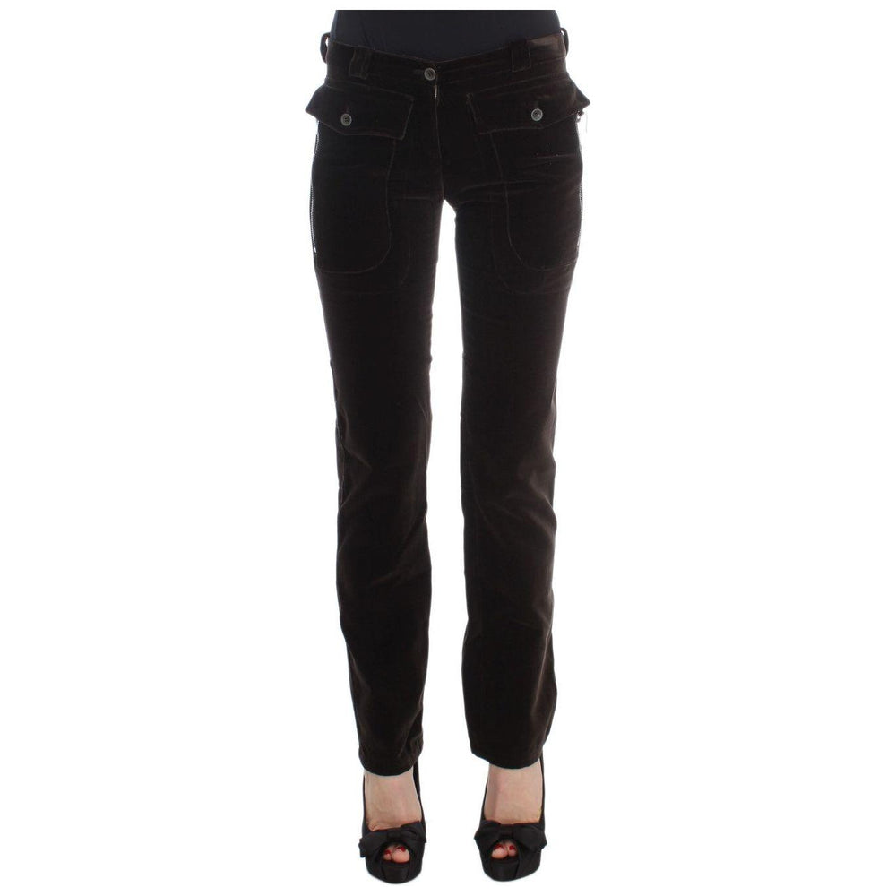 Ermanno Scervino Brown Cotton Velvet Zippers Slim Fit Pants