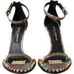 Dolce & Gabbana Brown Exotic Leather Crystal Sandals Shoes