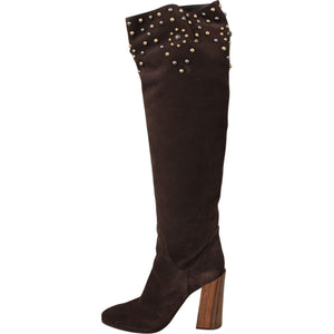 Dolce & Gabbana Brown Suede Studded Knee High Shoes Boots