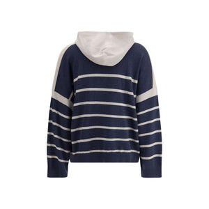 Brunello Cucinelli’s Cashmere Hooded Sweater is a luxurious and comfortable garment featuring a refined striped pattern that adds movement and personality. Ribbed hems and cuffs ensure a perfect fit, while the softness of cashmere offers unparalleled comfort, ideal for cooler days.