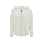 Brunello Cucinelli’s cotton Hoodie is a casual yet sophisticated piece enhanced by unique details. The two side welt pockets are embellished with appliquéd shiny jewels, adding a touch of elegance to the design. The zipper closure on the front panel and the monochrome pattern make it a versatile and easy-to-match piece. This sweatshirt combines comfort and style, ideal for a modern and refined look.