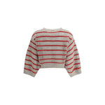 The linen Sweater by Brunello Cucinelli is an elegant and sophisticated piece, featuring a ribbed crew neck that adds a touch of refined simplicity. The openwork knit design with all-over shiny sequin details adds brightness and a touch of glamour. The wide three-quarter sleeves create a soft and fluid effect, while the ribbed cuffs and hem ensure a comfortable and well-defined fit. The loose fit gives the sweater a relaxed yet elegant look, making it ideal for sophisticated yet comfortable looks.