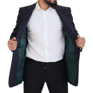Dolce & Gabbana Dark Blue Stripe Wool Single Breasted Blazer