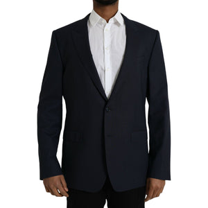 Dolce & Gabbana Dark Blue Wool Single Breasted Coat Blazer