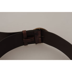 • Dolce & Gabbana Dark Brown Wide Calf Leather Logo Round Buckle Belt BEL8745 - 90