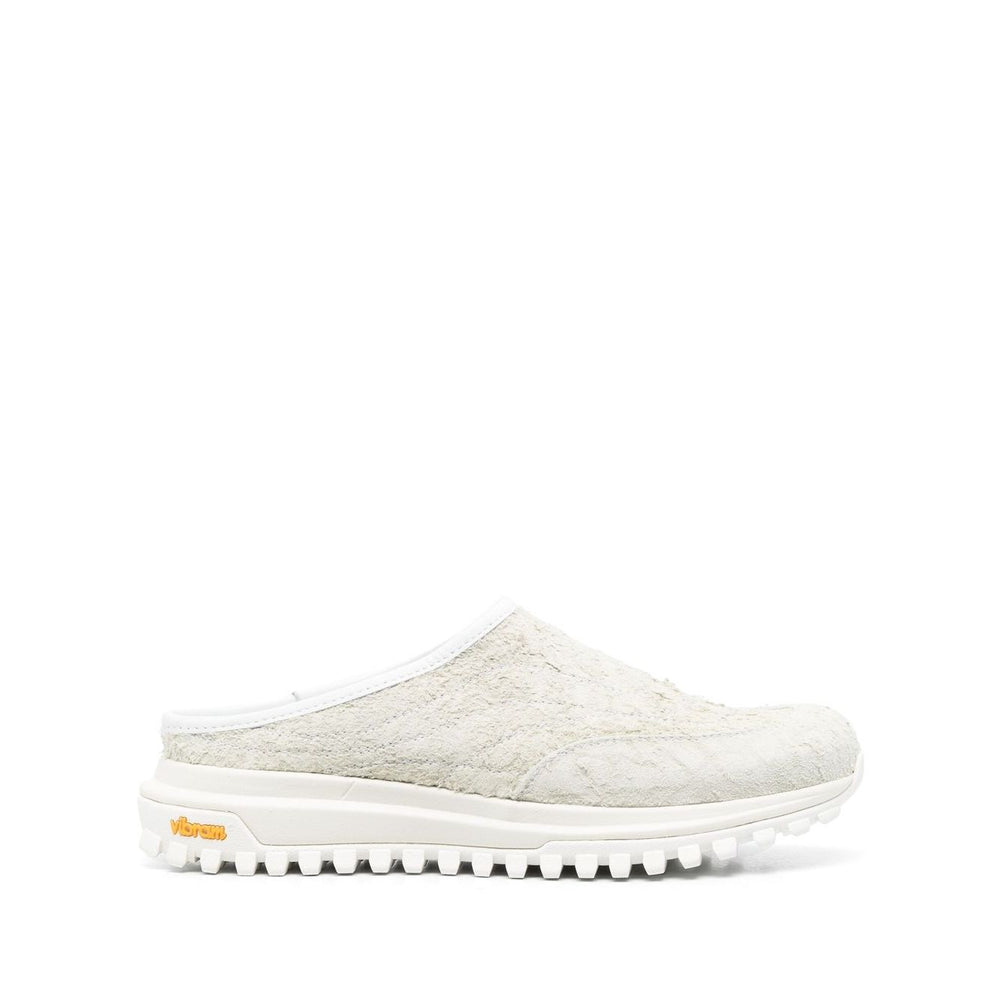 Maggiore crackled leather slides from DIEMME featuring off-white, calf leather, almond toe, slip-on style, branded insole and Vibram® sole. Maggiore mules Size and Fit - Heel 1,6 in / 4 cm; Platform 0,8 in / 2 cm