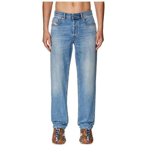 Elevate your denim game with these effortlessly stylish Diesel jeans. Crafted from a premium blend of cotton, polyester, and elastane, these light washed blue jeans offer a regular fit that contours effortlessly to your form. Featuring a classic five-pocket design with an iconic logo patch on the back, these jeans are the epitome of casual luxury. Button fastening assures a secure and tailored fit, making them an indispensable addition to your wardrobe.