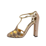 Dolce & Gabbana Beige Crystal Embellished Satin Leather Pumps Shoes