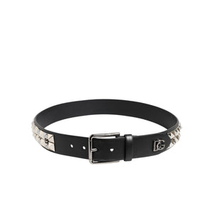 Dolce & Gabbana Black Calf Leather Studded Silver Buckle Belt