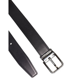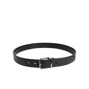 Dolce & Gabbana Black Classic Calf Leather Silver Buckle Belt
