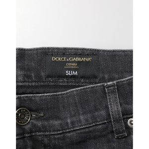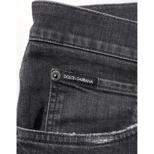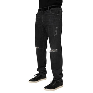Dolce & Gabbana Black Cotton Slim Fit Distressed Ripped Logo Jeans