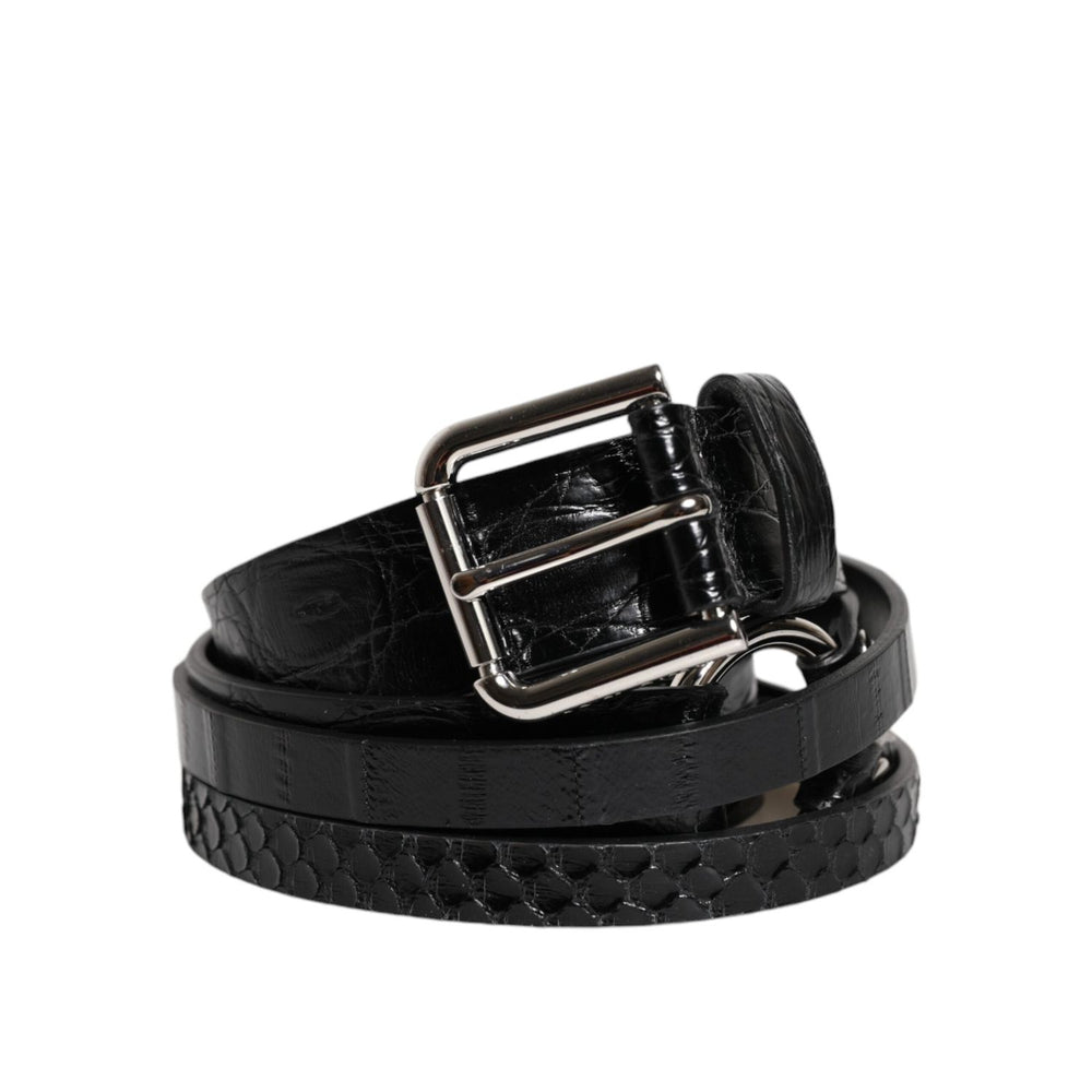 Dolce & Gabbana Black Exotic Leather Metal Logo Buckle Belt