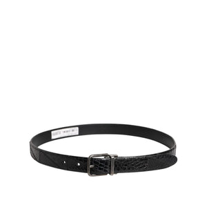 Dolce & Gabbana Black Exotic Leather Metal Logo Buckle Belt