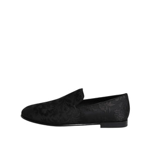 Dolce & Gabbana Black Floral Brocade Loafers Men Dress Shoes
