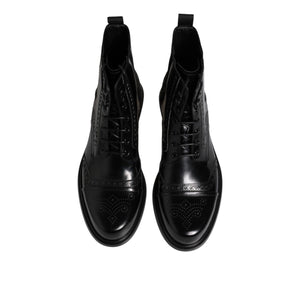 Dolce & Gabbana Black Leather Lace Up Mid Calf Boots Shoes